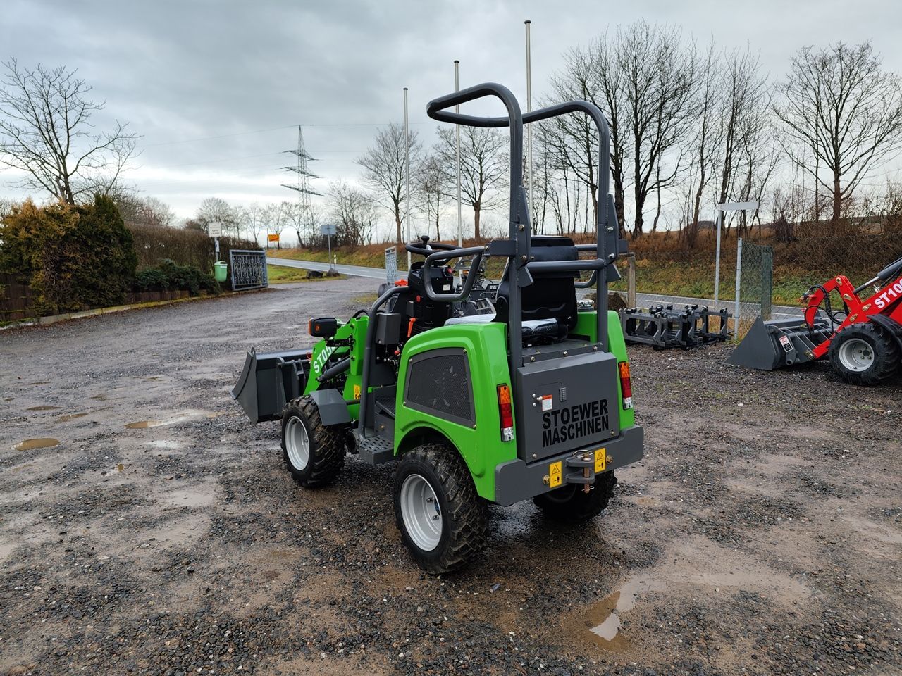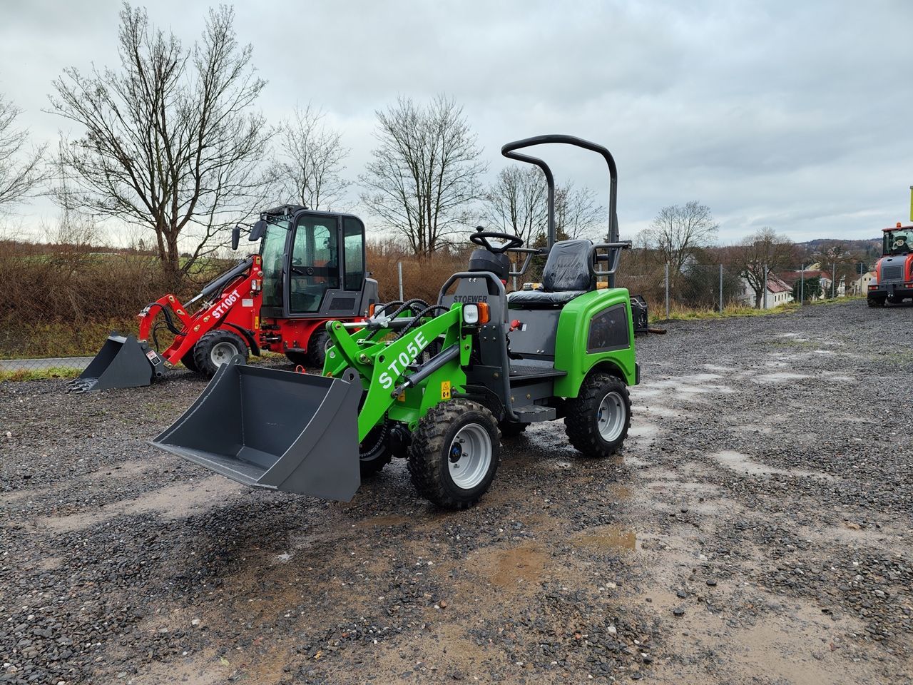 Inklusive Ladegerät, Schaufel und Palettengabel.
